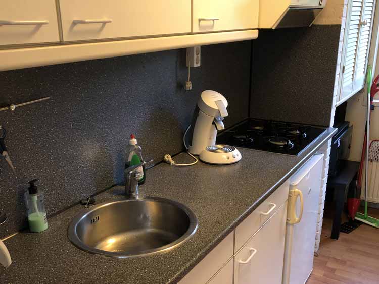 De keuken heeft een gasfornuis en een magnetron. Een koelkast, waterkoker en koffiezetapparaat zijn aanwezig, tezamen met servies en bestek voor in totaal zes personen.